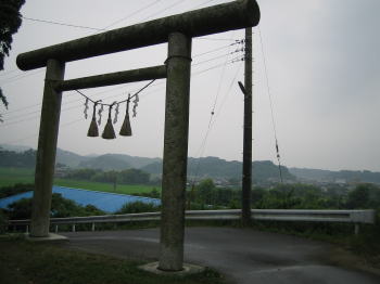 幾分、行ったり来たりして迷いながら、いち面のさみどりを抜け出して坂を登ります。大きなカーブの曲がりしなに意外にも立派な鳥居と注連縄。おあずま様です。雨脚が少し強くなって来ていましたが、何だかもう頭の中も、胸の中も、熱い何かが渦巻いていて、そんなことは気にもせずに石段を駆け上がりました。 ...いや、雨が嫌だったからではなくて、単純に走り出したかったんです。走って、駆けて、できることなら叫び出したい、とさえ思っていたんです。 |